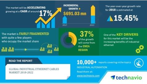 日前,国际市场研究机构Technavio发布了全球工业以太网电缆市场研究报告预测,预计2018-2022年,该市场将以17%的复合年增长率增长。