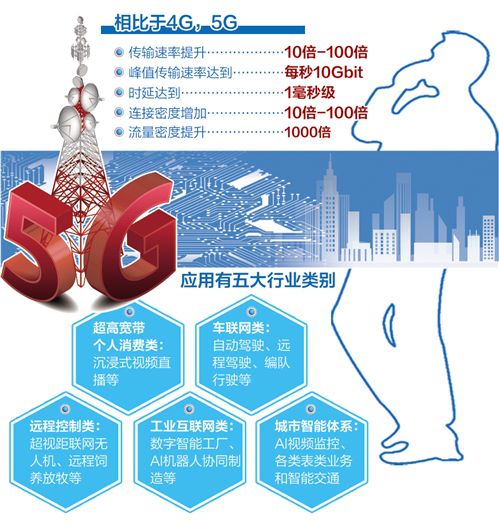 根据中国工程院院士余少华提供的数据,相比于4G,5G传输速率提升10倍—100倍,峰值传输速率达到每秒10Gbit,时延达到1毫秒级,连接密度增加10倍—100倍,流量密度提升1000倍。