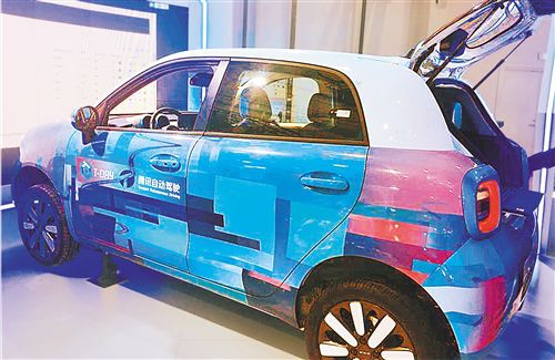 图为2019世界5G大会上亮相的腾讯自动驾驶汽车。
