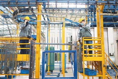 位于浙江省湖州市南浔经济开发区的怡达快速电梯有限公司车间内,工人们正在赶订单,加紧生产一批发往海外的电梯部件。 |