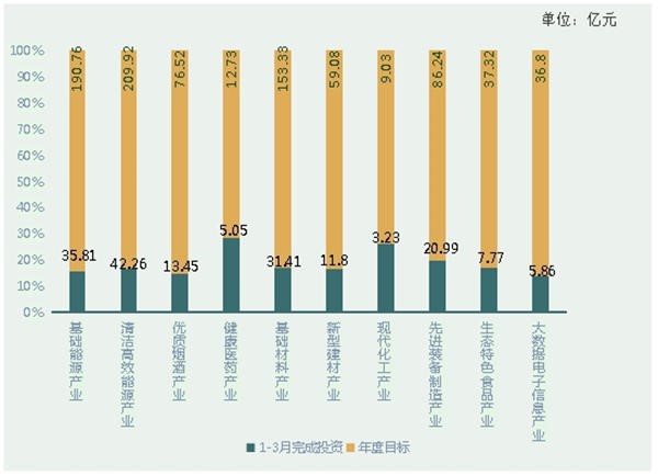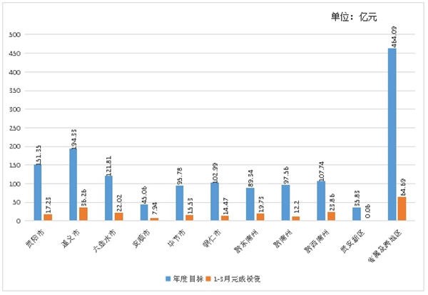 分领域看,重大基础设施项目完成投资321.74亿元,占年度计划的15.5%,占贵州省重大工程项目完成投资数的23.6%。其中:基础设施"六网会战"完成投资233.99亿元。重大产业发展项目完成投资881.89亿元,占年度计划的20.8%,占贵州省重大工程项目完成投资数的64.8%。其中:十二个农业特色优势产业项目完成投资71.03亿元,十大工业产业项目完成投资177.64亿元,服务业创新发展十大工程项目完成投资145.01亿元,房地产开发项目完成投资434.93亿元。重大民生工程项目完成投资157.79亿元,占年度计划的16.6%,占贵州省重大工程项目完成投资数的11.6%。
