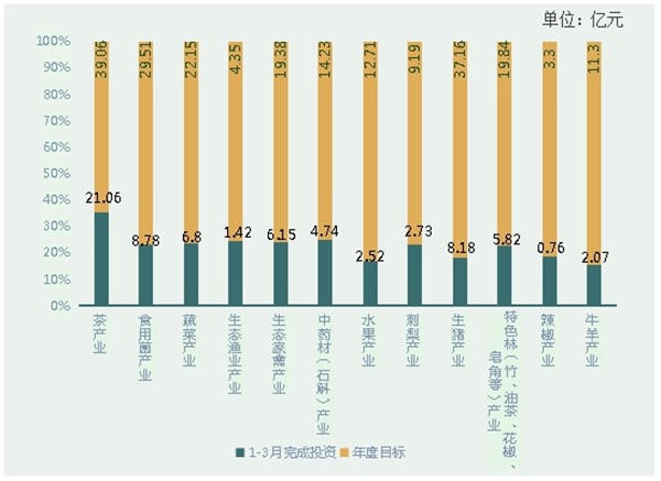 图5 十二个农业特色优势产业贵州省重大工程项目投资完成情况