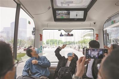 试乘文远无人驾驶小巴的乘客纷纷拍照留念。